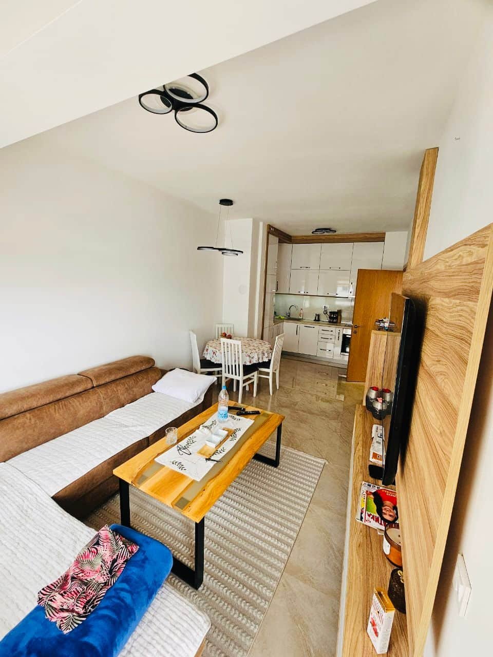 Zum Verkauf steht eine moderne, vollständig möblierte Einzimmerwohnung mit 50 m² Wohnfläche in einem neuen Wohngebäude mit Aufzug. Die Immobilie befindet sich im 5. Stock und überzeugt durch ihre hervorragende Lage – nur 200 Meter vom Strand und in unmittelbarer Nähe des Stadtzentrums von Šušanj.