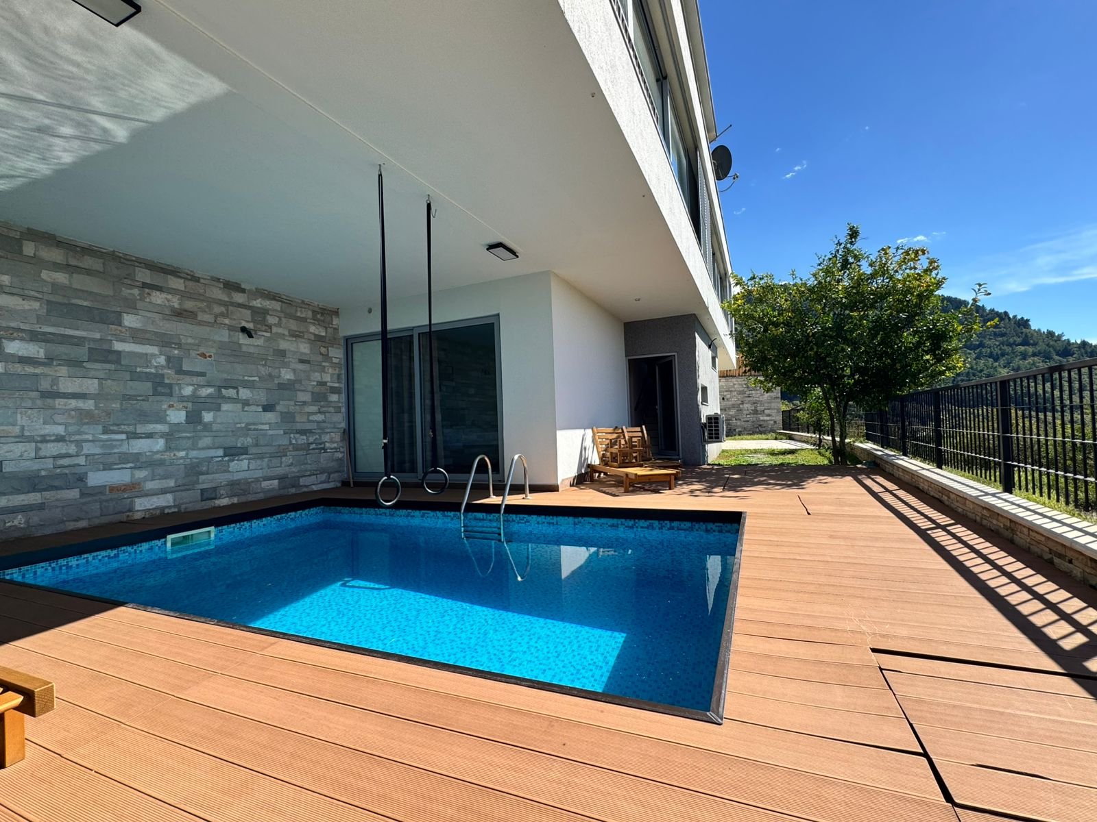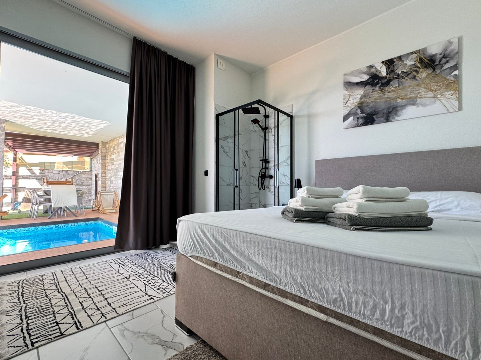 Die Villa überzeugt durch ihre moderne Architektur und luxuriöse Ausstattung: Ein großzügiges Wohnzimmer mit offener Küche und Essbereich schafft ein helles, einladendes Ambiente. Drei geräumige Schlafzimmer und vier stilvoll gestaltete Badezimmer bieten höchsten Wohnkomfort. Der beheizte Pool mit Sonnenterrasse, ein privater Wellnessbereich mit Sauna und eine Rooftop-Terrasse zum Entspannen oder geselligen Beisammensein sorgen für unvergleichliche Lebensqualität.
