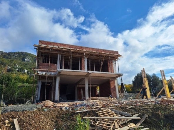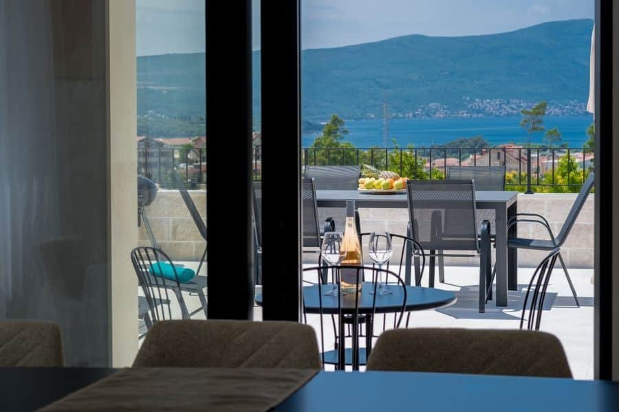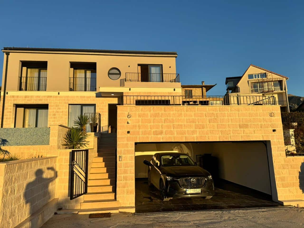 Diese moderne Villa in Mrčevac bietet auf 250 m² Wohnfläche höchsten Wohnkomfort und beeindruckt mit einem unverbaubaren Blick auf das Meer. Das Anwesen liegt auf einem 474 m² großen Grundstück, nur fünf Minuten vom Flughafen Tivat und zehn Minuten von Porto Montenegro entfernt.